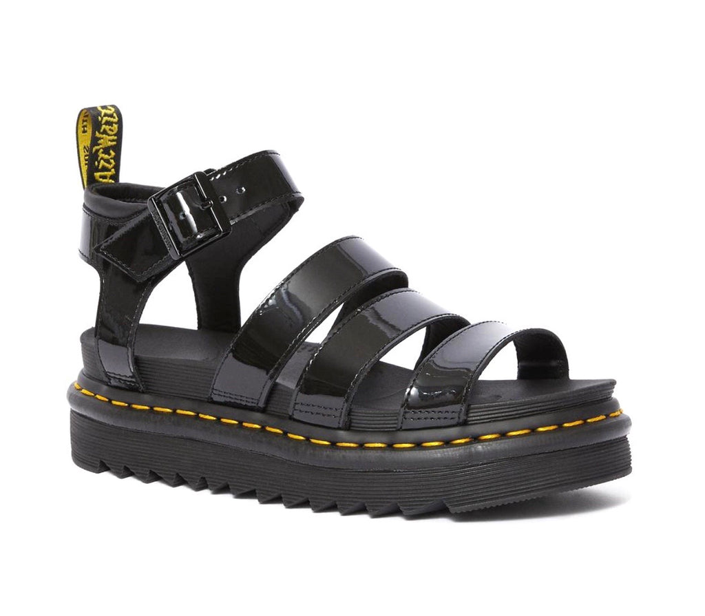 Dr. Martens Blaire Chunky Black Patent Sandal Buckle 3 Strap