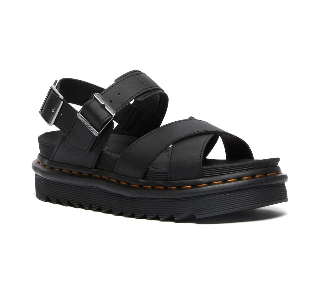 Dr. Martens Voss II Black Hydro Leather Cross Strap Sandal